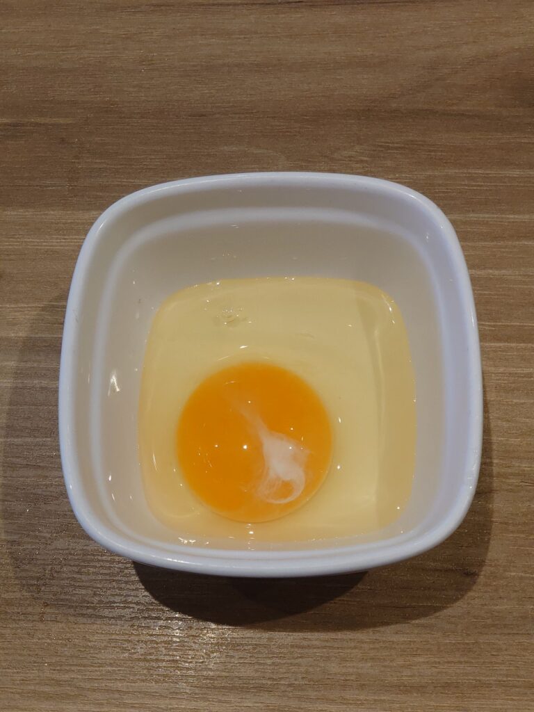・生卵 2個(クロエ流、頼任は1個でチャレンジ)